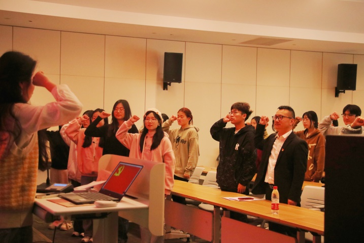 在两位同学的分享结束后,全体党员进行了重温入党誓词。