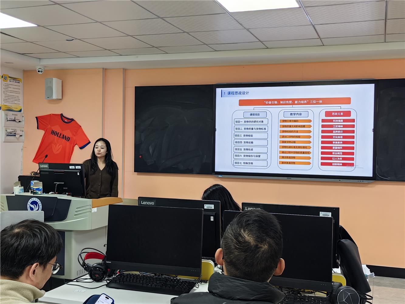 现代物流管理专业机构王孟媛、黄正华、楼巧玲三位老师分别就《货物学》、《物流法律法规》和《智慧物流与供应链基础》等三门课程,结合专业人才培养目标和课程性质特点,着重介绍课程对接岗位情况、课程内容的项目化体系及对应的能力图谱、课程思政体系及实施路径、产教融合的课程教学实施、理实一体化课程考核方式、后续改革举措等6个方面内容,并结合课程诊改相关内容进行剖析。