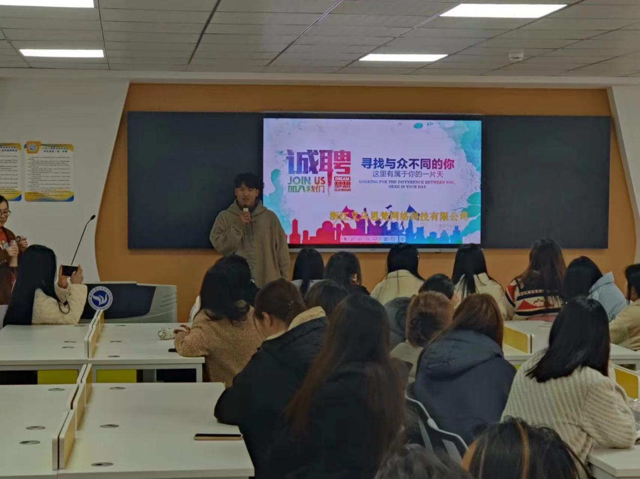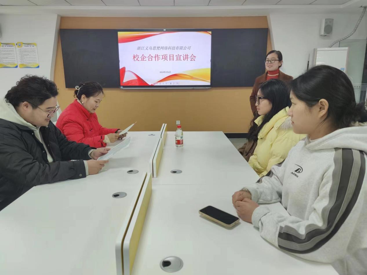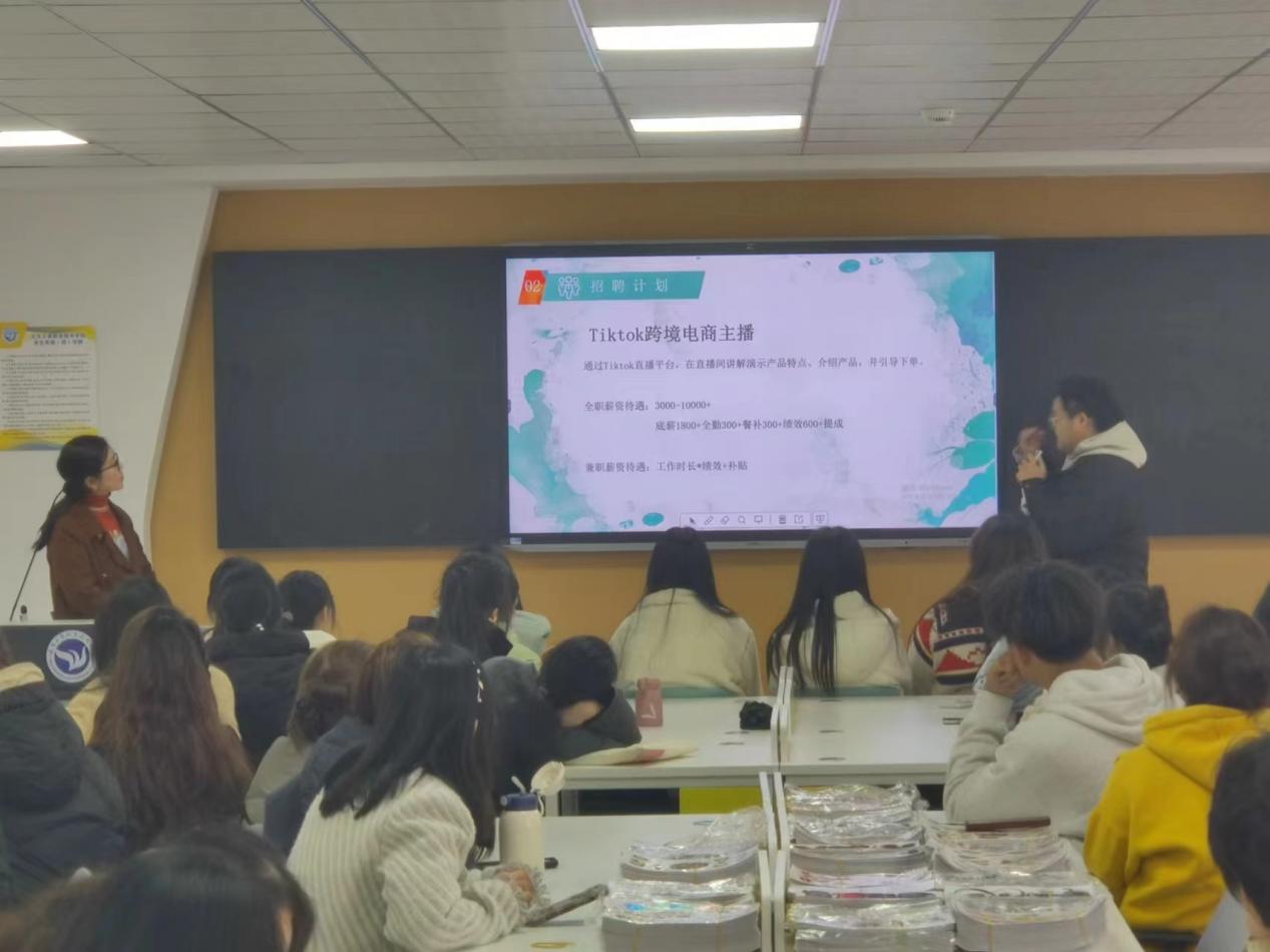 随着校企合作不断深化,近日,外语外贸学院与浙江义乌思梵网络科技有限公司(以下简称思梵公司)再次携手,共同开展现代学徒制项目。此次活动吸引了2021、2022、2023级学生的广泛关注,报名人数高达200余人,实际到场学生超过百人,展现出学生们对于实践学习和职业发展的浓厚兴趣(图1)。