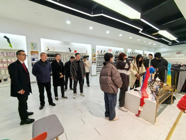 随后,马广一行实地考察了学校驻企业的多语种跨境直播团队,为合作共赢奠定坚实的基础。据悉,该团队已于2023年和浪莎集团开启校企合作,目前已直播带货十余场。