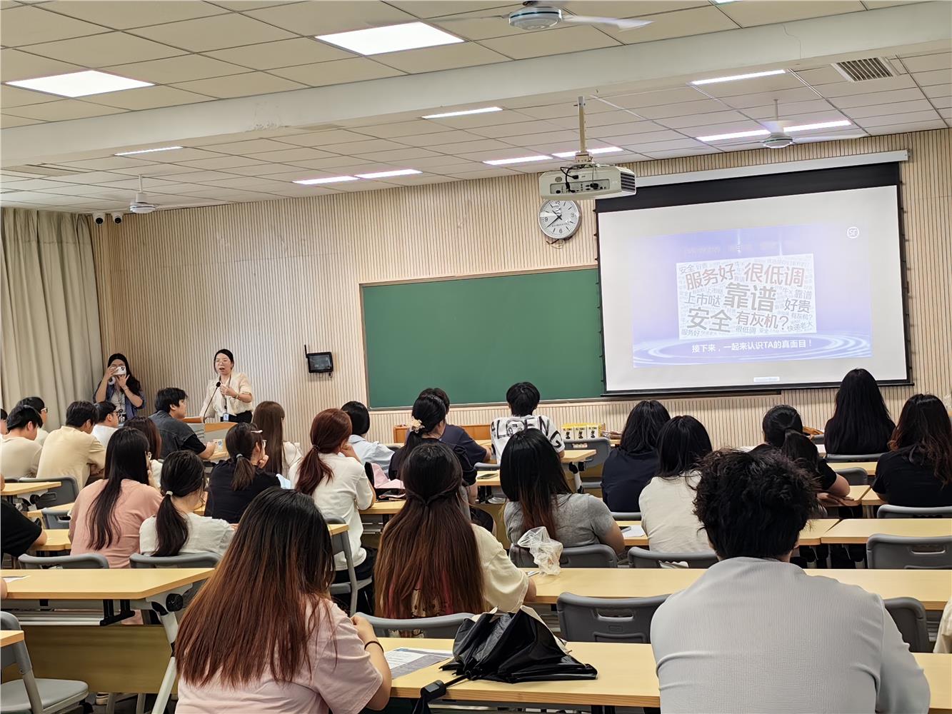 宣讲过程中,同学们与何经理积极互动,现场气氛热烈,送出的顺丰文创小礼品拉近了企业与学生的距离。
