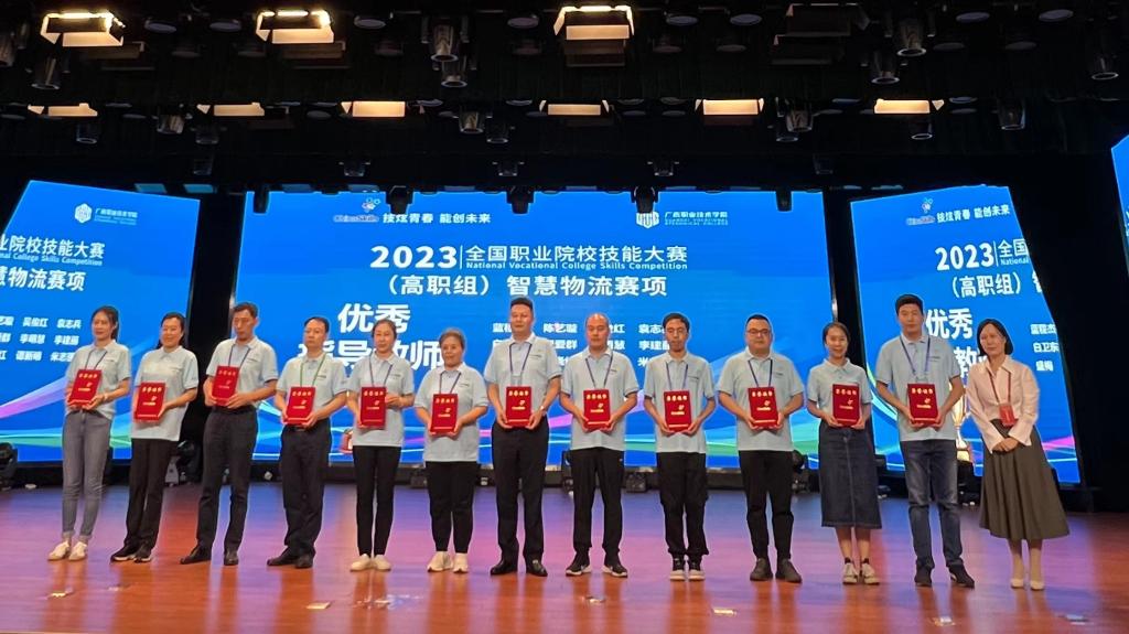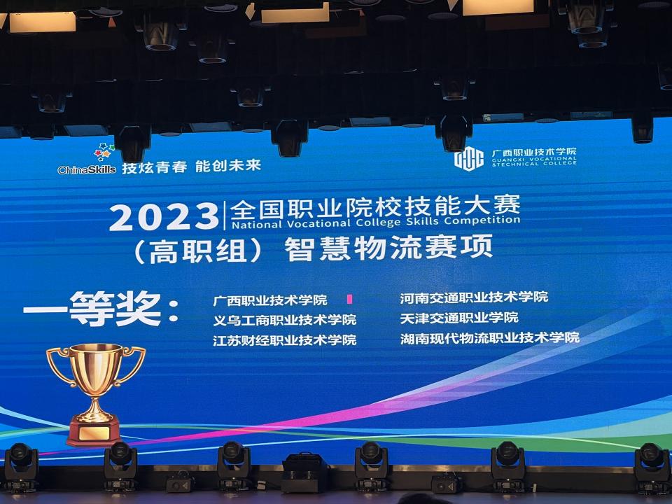 9月23日至24日,2023年全国职业院校技能大赛高职组“智慧物流”赛项(学生赛)在广西职业技术学院成功举办,共有来自全国31个省、直辖市和自治区的63支代表队、252名参赛选手同台竞技。经过连续两天的激烈角逐,我校外语外贸学院吴俊红、袁志兵老师指导的孙楠、林丝丝、朱倩、陈慧婷团队荣获国赛团体一等奖,这是该赛项浙江省历年最好成绩。