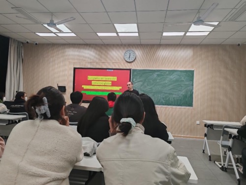 12月28日晚上,由外语外贸学院、国际合作与交流处、西班牙语社联合主办的西语讲座“全球贸易时代的西班牙语”在春晗楼404教室举行。我校西班牙籍教师Diego为应用西班牙语专业和西班牙语社的同学带来了一场关于西班牙语和国际贸易关系的讲座。