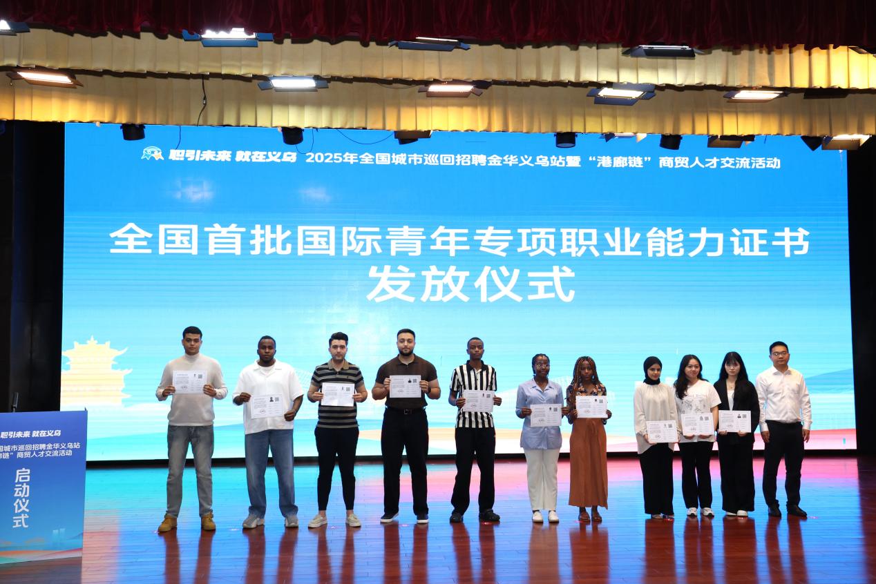 4月21日,来自17个国家的32名留学生在义乌工商职业技术学院参加国际青年技能培训鉴定,最终共有18名留学生通过考核,成功获得全国首批“国际商贸AI应用”专项职业能力证书。