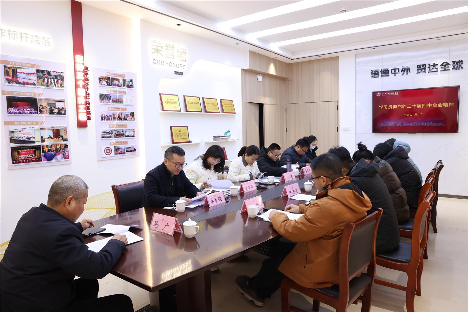 12月26日上午,院长马广到外语外贸学院宣讲党的二十届四中全会精神并巡听旁听外语外贸学院党委理论学习中心组“党的二十届四中全会精神”专题学习会。人事处、职业教育研究所负责人,外语外贸学院班子成员及教师代表参加会议。