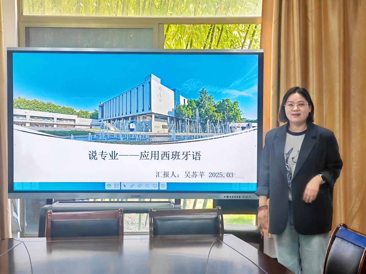 在活动中,国际经济与贸易、应用英语、应用西班牙语、国际商务、现代物流管理各专业主任着重介绍专业对接的区域产业(链)情况、培养目标与定位、近三年专业对接产业的情况分析、专业对应产业的适度超前性体现、课程思政体系及实施路径、产教融合人才培养模式、后续改革举措等7个方面。