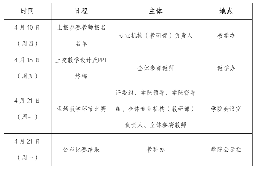 为贯彻落实中共中央、国务院《关于弘扬教育家精神加强新时代高素质专业化教师队伍建设的意见》要求,大力弘扬劳模精神、劳动精神、工匠精神,以教育家精神为引领,进一步推动我院青年教师队伍建设,提高青年教师的教育教学水平和课堂教学改革能力,助推我院高质量发展,经研究决定,举办学院2025年青年教师教学竞赛。现将有关事项通知如下: