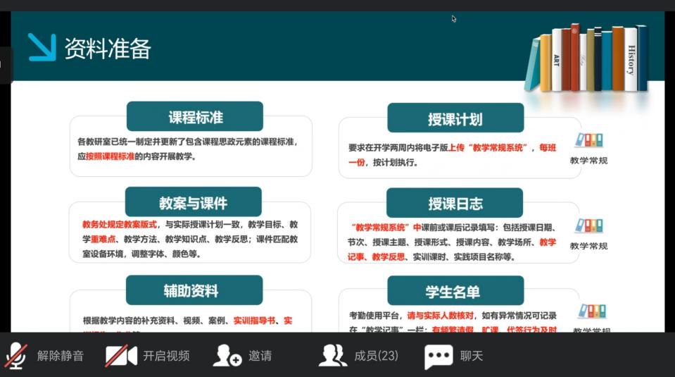 会议中,苏曼围绕教学常规资料完善要点展开讲解。她结合实际教学案例,从教学计划、教案撰写、学生成绩记录等方面,细致阐述了资料完善的具体标准和注意事项。同时,苏曼着重强调了课堂纪律要求,要求兼职教师加强课堂管理,营造良好的教学秩序,保障教学活动顺利进行。