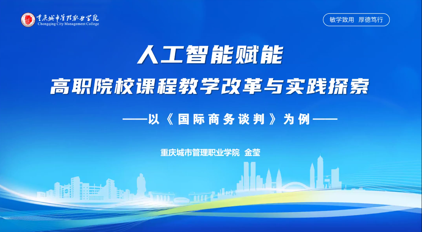 为推动人工智能与高职教育深度融合,助力课程教学改革提质增效,外语外贸学院近日邀请重庆城市管理职业学院金莹教授开展《人工智能赋能高职院校课程教学改革与实践探索》主题讲座。