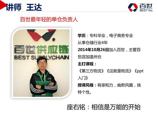 王耀燕,女,硕士研究生,副教授,浙江省高职高专专业带头人,主讲《管理学原理》《物流经济地理》《物流英语》等课程,主编教材2部,指导学生参加专业技能大赛获省级一等奖1项、二等奖2项;主要研究方向为供应链管理、高等职业教育,主持厅级以上教学、科研项目5项,发表论文二十余篇。