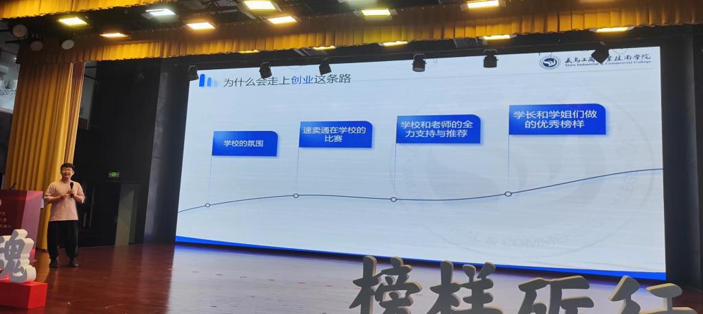 讲座现场,谢尚坚以“如何才能在跨境电商找到商机”为题,从学校的创业氛围、学校和老师的全力支持、学长学姐的优秀榜样等方面讲述了自己为何会走上创业这条路,毫无保留地分享了自己十余年来在创业过程中积累的宝贵经验和实操技巧,并表达了对母校精心培育的感激之情。“只有行动起来,才有机会!”活动最后,谢尚坚结合自身经历鼓励学弟学妹要把握机遇,用行动追求梦想。