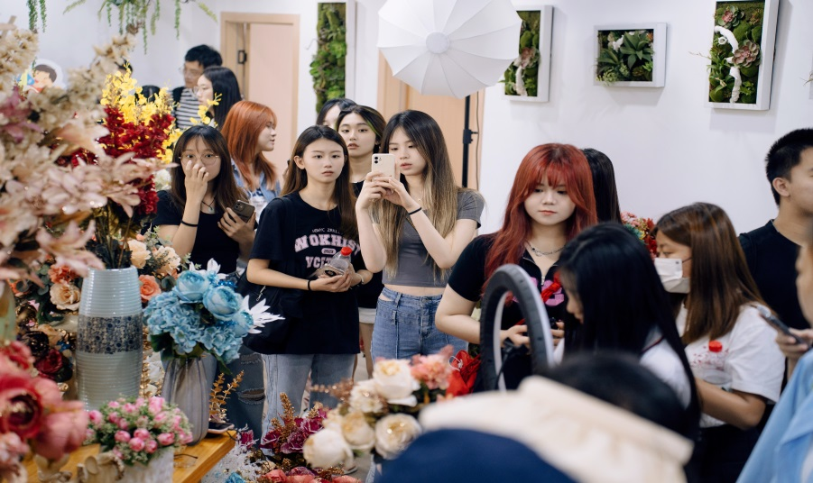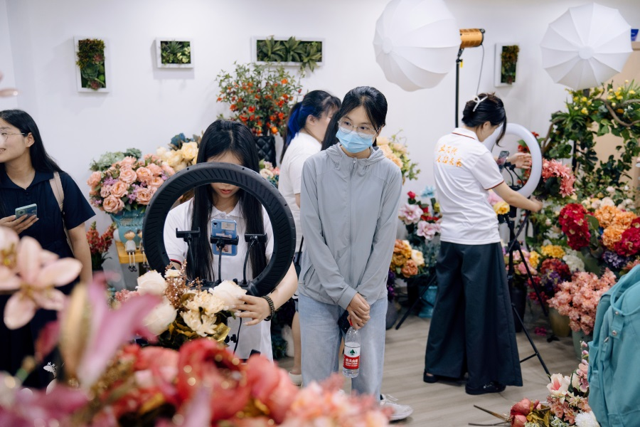 暑期社会实践团队八八战略下的跨境电商直播:共创辉煌跨界代表胡浩与在座师生交流了自身跨境电商直播创业之路。随后,团队指导教师带领浙江大学师生参观了学院跨境电商直播基地。大家对跨境直播表现出浓厚的兴趣,纷纷为直播学生点赞。