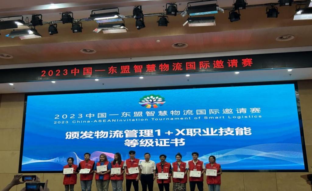 2023年9月15-16日,第一届“中国-东盟智慧物流国际邀请赛”在广西职业技术学院举行。由外语外贸学院现代物流管理专业王东辉老师和国际教育学院厉力老师共同指导,由1名越南留学生、1名菲律宾留学生以及1名物流管理专业同学共组队参赛。本次大赛是第20届中国-东盟博览会的组成部分,2023中国—东盟职业教育联展暨论坛的技能竞赛项目之一,共有来自全国7个省份共13所高职院校的18支队伍参赛,其中有来自越南、泰国、菲律宾等7个东盟国家的国际学生共36人参赛。