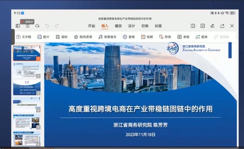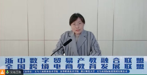 2023年11月18日,由义乌工商职业技术学院、金华职业技术学院、浙江师范大学、义乌市国际陆港集团有限公司联合主办的浙中数字贸易产教融合联盟2023年年会成功举办。年会以线上形式开展,以“高水平发展数字贸易,高质量培养数贸人才”为主题,浙中数字贸易产教融合联盟全体会员单位近200人参加了本次年会。