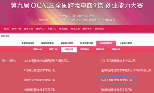 近日,2023年由中国国际贸易学会主办的两项赛事落下帷幕,我院学生团队在第九届OCALE全国跨境电商创新创业能力大赛秋季赛中荣获一等奖二项、二等奖二项、三等奖二项,教师团队在第五届全国数字贸易教师教学实践能力竞赛中荣获特等奖一项、一等奖一项、二等奖一项、三等奖一项。