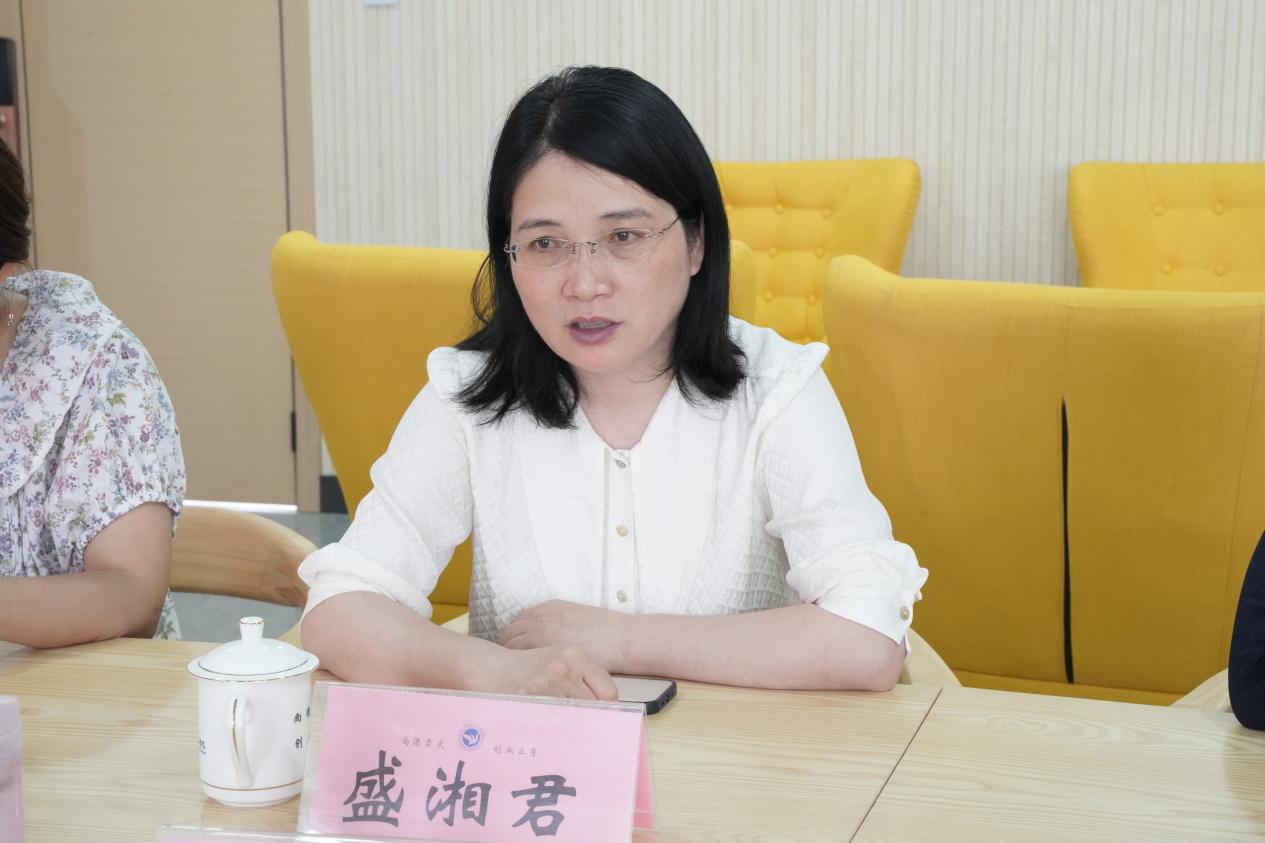 座谈会上,盛湘君代表学校对常红梅一行的到来表示热烈欢迎,介绍了学校整体发展情况及办学特色与成果,她指出,学校以“义乌发展经验”为根本遵循,坚持“根植义乌、服务区域、走向国际”的办学定位,并结合常红梅此行的调研主题,着重介绍了我校国际化办学的工作思路及取得成绩。