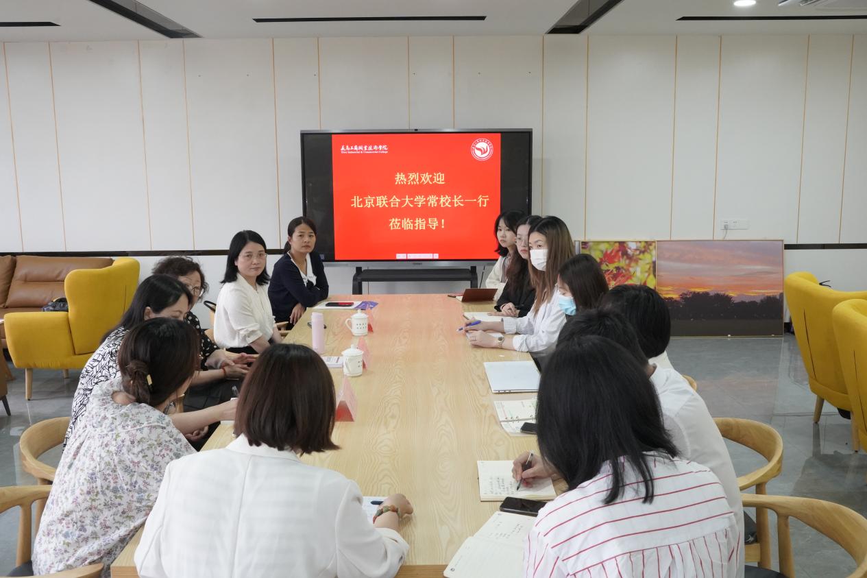 近日,教育部职业院校外语类专业教学指导委员会常务副主任委员兼秘书长、北京联合大学副校长常红梅一行莅临我校调研交流。学校副院长盛湘君、外语外贸学院副院长、应用英语专业、多语种教研室负责人及相关骨干教师参与调研座谈。