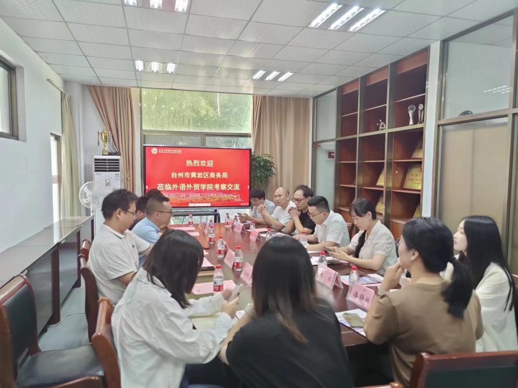 图一 黄岩区商务局代表团一行与外语外贸学院一行座谈