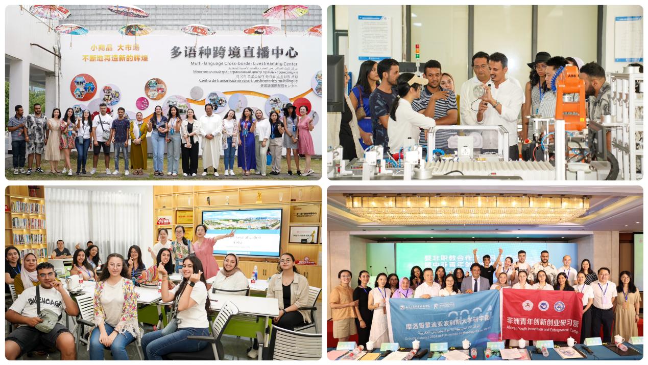 研学期间,学员们还参加了多场主题讲座、实践体验与研讨交流会。通过义乌市场发展与创新创业、跨境电商与直播之道等主题讲座,深入了解中国市场的活力与创新精神;通过跨境直播实践体验,深刻体会中国外贸转型发展的新业态、新环境与新机遇;通过婺非职教合作交流月开幕式活动暨中非青年创新创业对话会,他们聆听专家学者的见解,与众多中国的非洲青年创客对话交流,深刻领悟中国的创新创业潜力,同时也提出了自己的疑问与反思。“中国的网络、物流、基础设施等较为发达,如何才能让一些新业态和新模式复制推广到摩洛哥,这值得深思。”RAYANE EL GOMARI说,“在这里,我学到了很多知识。富有见地的研讨交流活动为我打开了许多未来的可能性。”