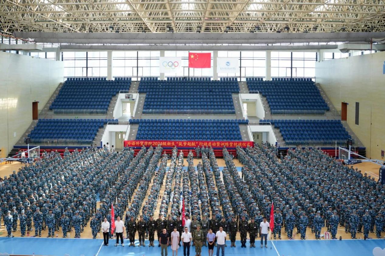 外语外贸学院党政领导班子、承训部队教官、戎耀青年学生教官、辅导员、新生班主任、班助及全体新生参加。