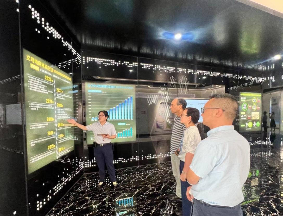 华承健书记陪同巴尔卡维校长走进义乌国际陆港电商城。了解义乌电商发展情况后,巴尔卡维校长表示希望进一步加强与我校在专业教学与技能培训方面的互动,建议双方组织学生开展相关职业技能合作或竞赛项目,促进更多的沟通与交流。
