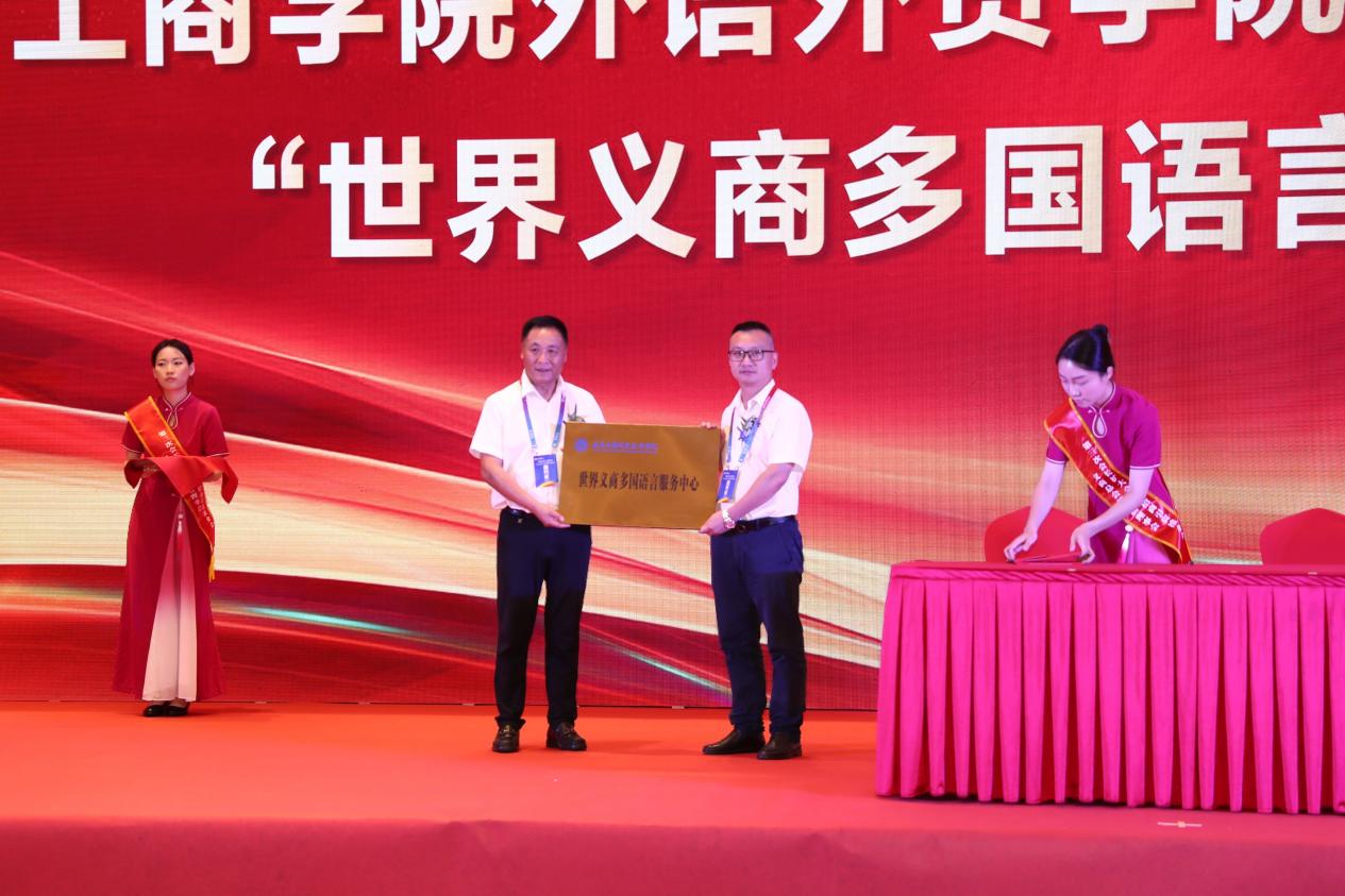 在会议上,学校向世界义商总会授予“世界义商多国语言服务中心”,此举象征着该世界义商多国语言服务中心在外语外贸学院与世界义商总会的合作框架下正式成立。