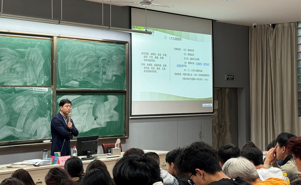 为进一步深化学生对国际贸易中商品检测与认证环节的认识,10月30日,学院特邀浙江立新检测技术有限公司总经理何炜炜担任主讲嘉宾,为新生们带来了一场主题为“进出口商品检测与认证”的专题讲座。此次讲座吸引了国贸专业师生百余人积极参与,现场气氛热烈。