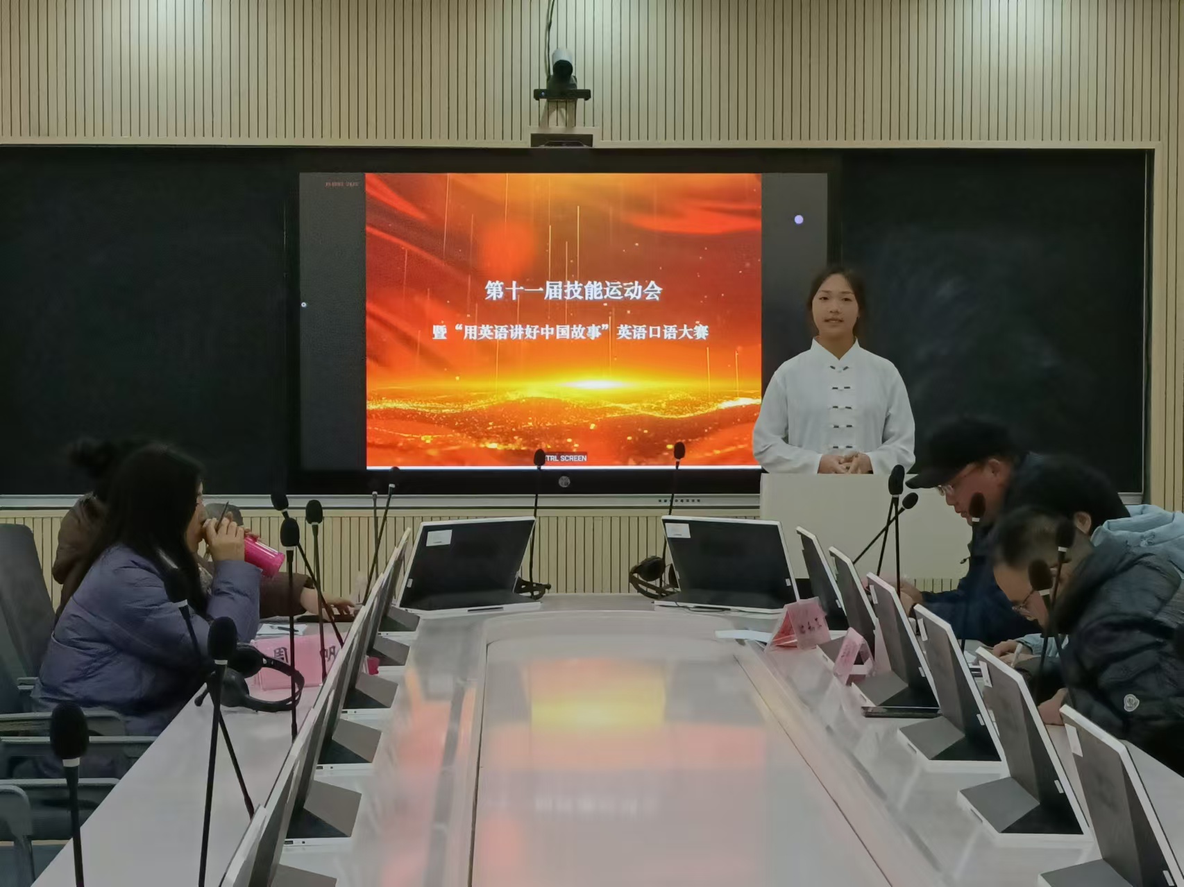 12月23日下午,学校第十一届技能运动会“英语口语大赛”项目在望道楼407举行。经过前期初赛筛选产生的22名选手参加本次比赛,同台竞技,经过激烈的角逐,最终产生一等奖3人,二等奖5人,三等奖7人。