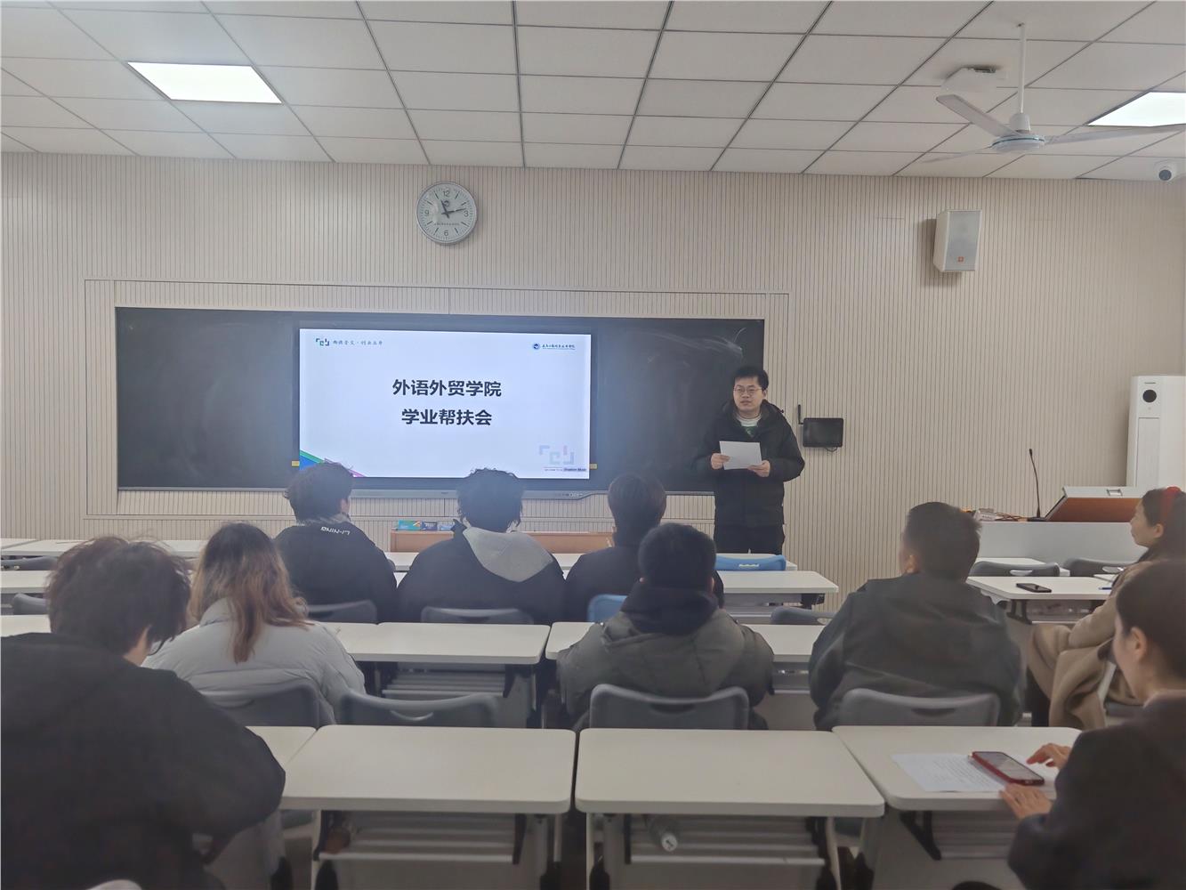 为强化学生学业支持,提升整体教学质量,外语外贸学院于3月6日召开学业帮扶工作会议,存在学业困难的学生、相应班主任及任课老师参加会议。