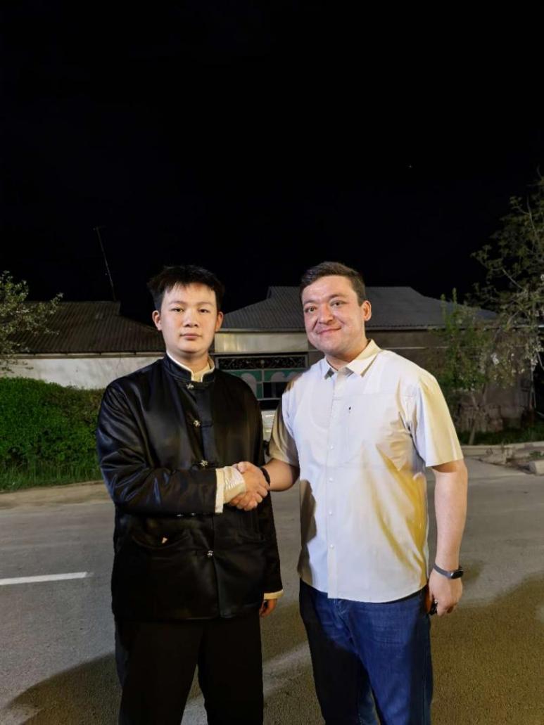 朱庆元与乌兹别克斯坦塔什干州努拉夫尚市市长奇里察诺夫·诺宏合影