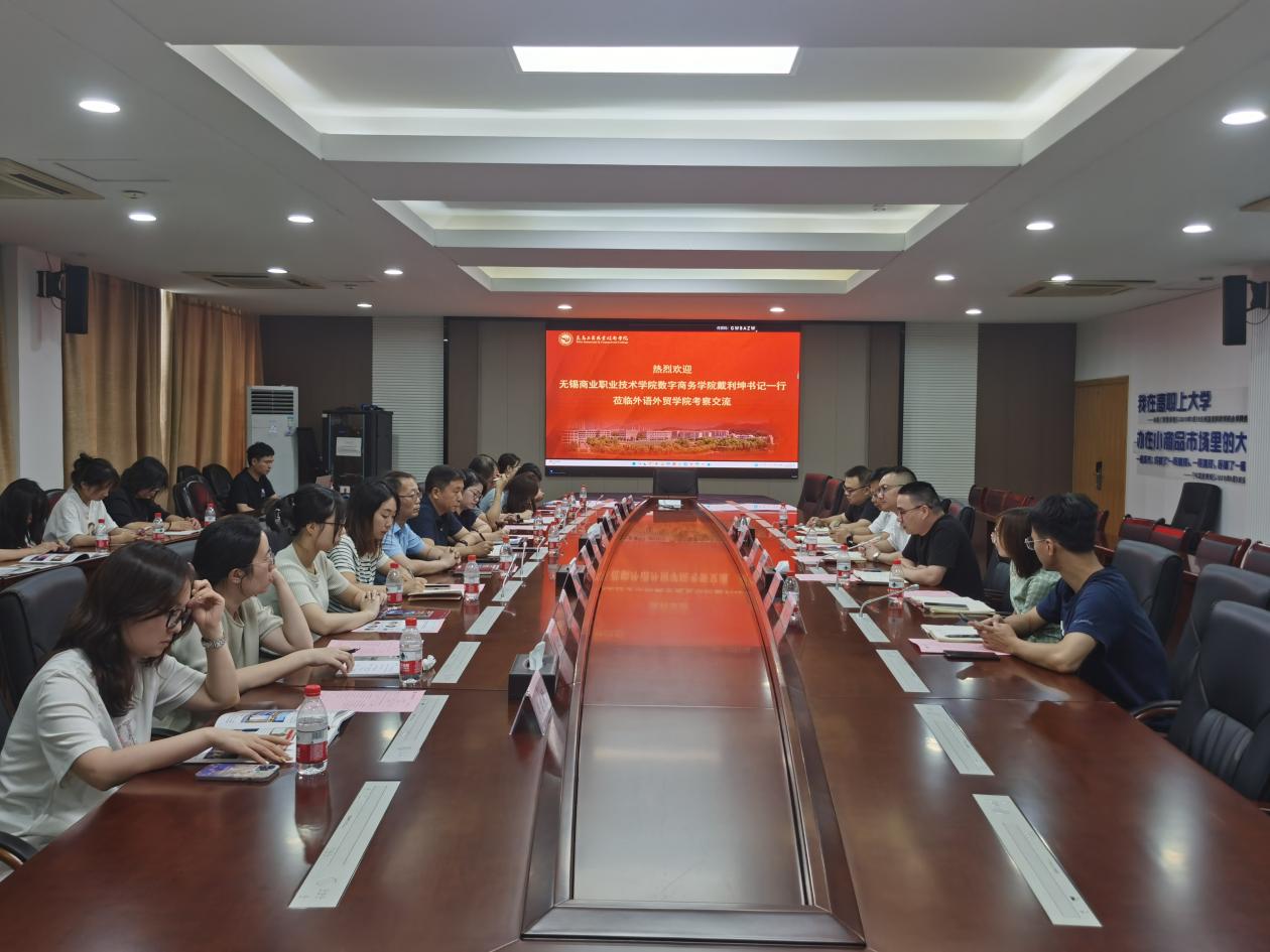 6月30日上午,无锡商业职业技术学院数字商务学院戴利坤书记一行19人来我校外语外贸学院考察调研,外语外贸学院党委书记季晓伟、副院长季晓伟及相关专业教师参加交流。