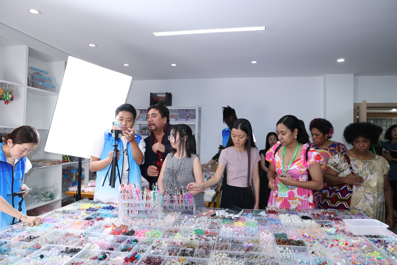 参观期间,使团成员就跨境电商的物流、直播平台、直播话术、培训项目、现代学徒制人才培养等进行深入交流与探讨,使团成员对我校依托义乌市场优势、创新跨境电商人才培养的模式表示高度赞赏,并表达了引入相关课程与培训体系、共同培育跨境电商人才的强烈意愿,希望以此次访问为契机,深化太平洋岛国与义乌在“一带一路”倡议下的务实合作。