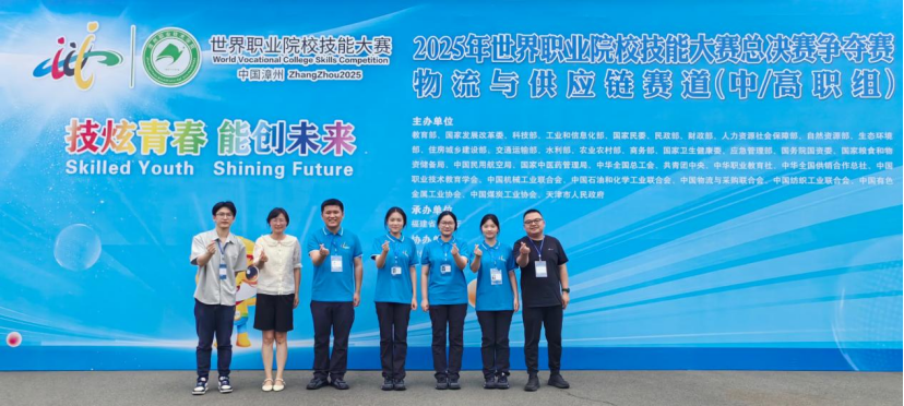 2025年8月31日,2025年世界职业院校技能大赛总决赛争夺赛物流与供应链赛道比赛在漳州职业技术学院落下帷幕,外语外贸学院现代物流管理专业吴俊红、黄正华老师指导的戴欣雨、高雨杰、娄祺沣、吴桐团队斩获铜奖。